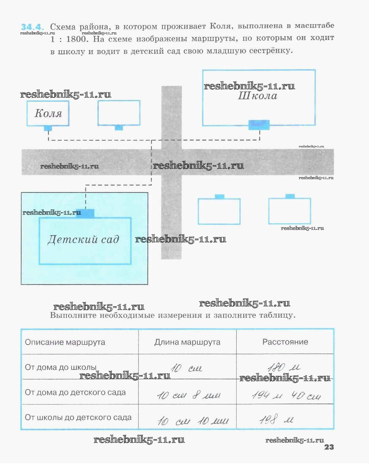 Готовая домашняя работа с ответами по Математике за 5 класс Зубарева Рабочая тетрадь УМК Часть 1, 2 Мнемозина 2014 ФГОС - §34. Расстояние между двумя точками. Масштаб 4