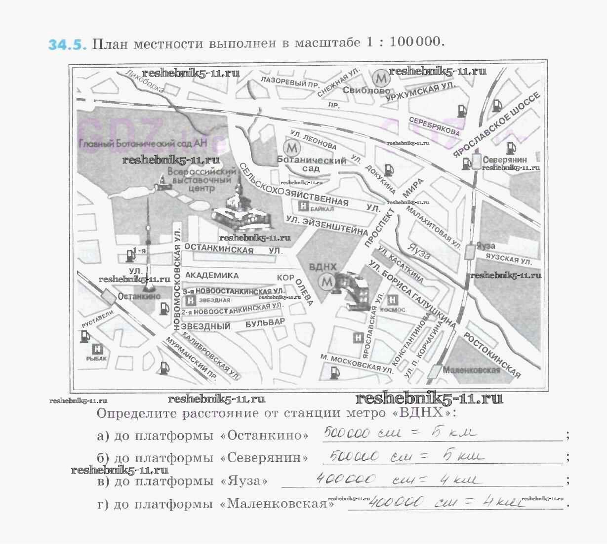 Готовая домашняя работа с ответами по Математике за 5 класс Зубарева Рабочая тетрадь УМК Часть 1, 2 Мнемозина 2014 ФГОС - §34. Расстояние между двумя точками. Масштаб 5