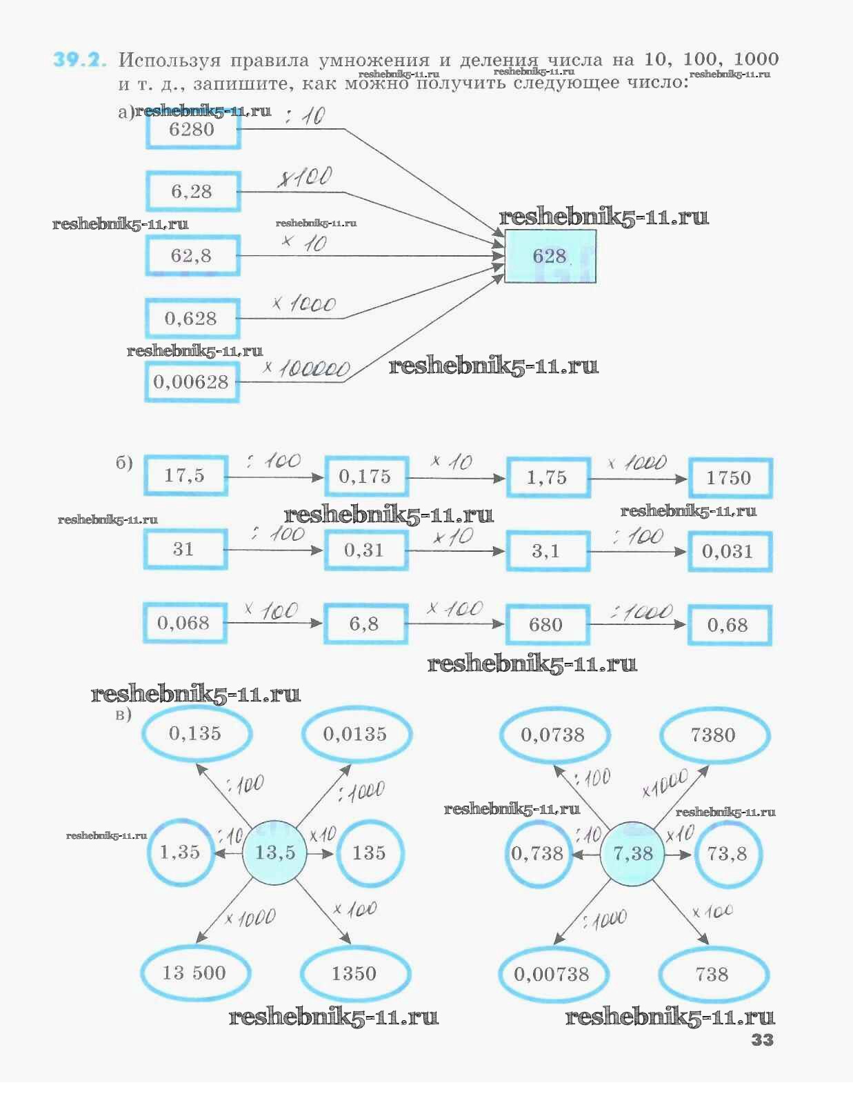 §39. Умножение и деление десятичной дроби на 10, 100, 1000 и т. д..