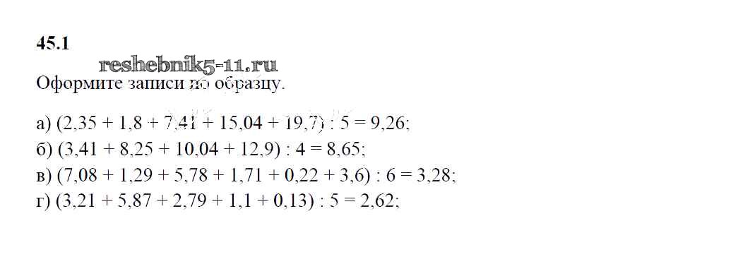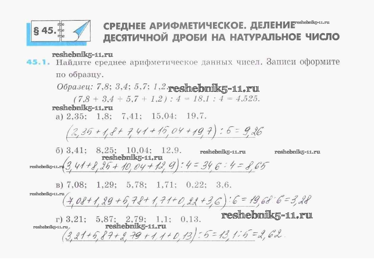 Готовая домашняя работа с ответами по Математике за 5 класс Зубарева Рабочая тетрадь УМК Часть 1, 2 Мнемозина 2014 ФГОС - §45. Среднее арифметическое. Деление десятичной дроби на натуральное число 1