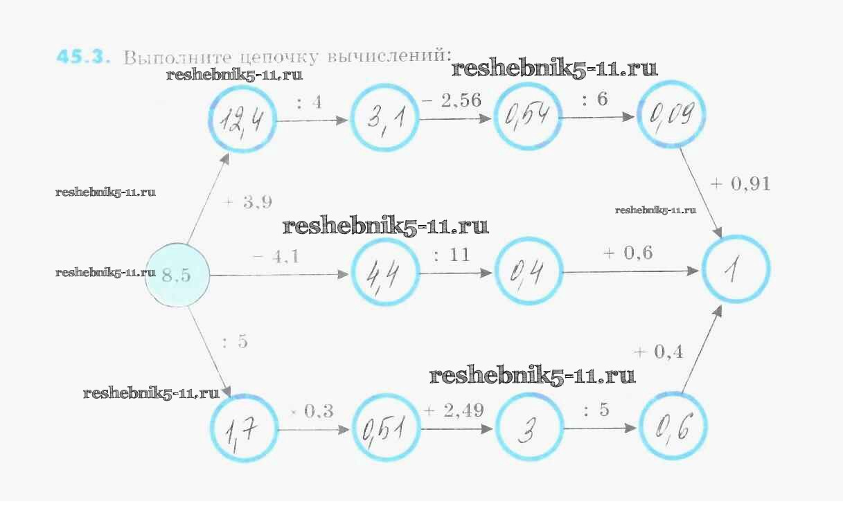 Готовая домашняя работа с ответами по Математике за 5 класс Зубарева Рабочая тетрадь УМК Часть 1, 2 Мнемозина 2014 ФГОС - §45. Среднее арифметическое. Деление десятичной дроби на натуральное число 3