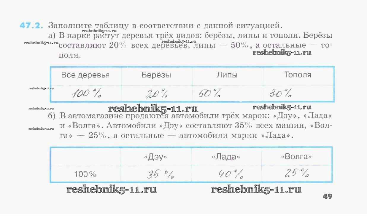 Готовая домашняя работа с ответами по Математике за 5 класс Зубарева Рабочая тетрадь УМК Часть 1, 2 Мнемозина 2014 ФГОС - §47. Понятие процента 2