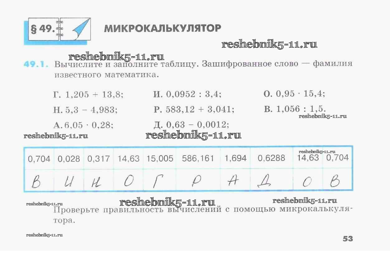 Готовая домашняя работа с ответами по Математике за 5 класс Зубарева Рабочая тетрадь УМК Часть 1, 2 Мнемозина 2014 ФГОС - §49. Микрокалькулятор 1