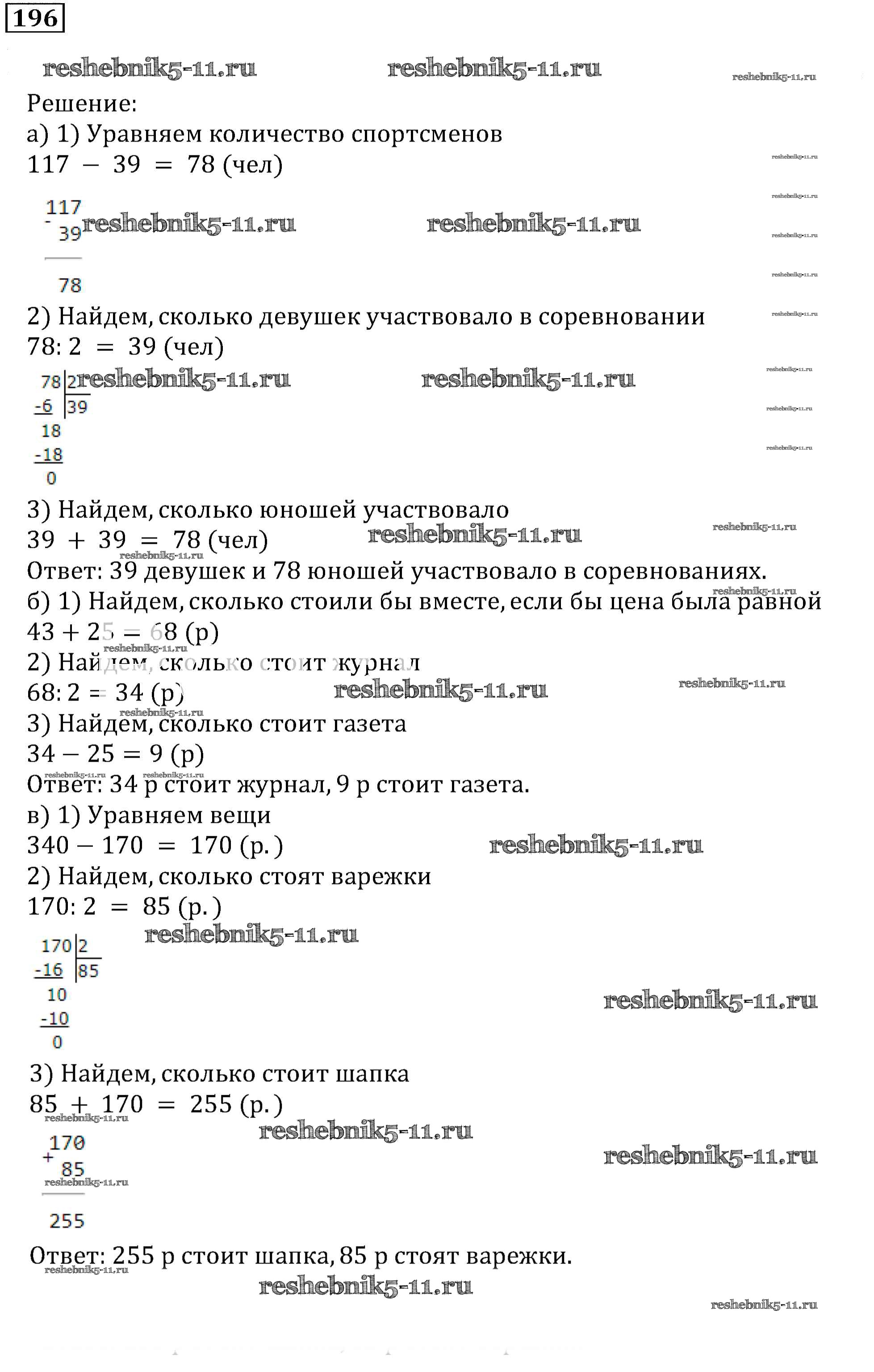 Готовая домашняя работа с ответами по Математике за 5 класс Бунимович Задачник Сферы Часть Просвещение 2015 ФГОС - Упражнения 196