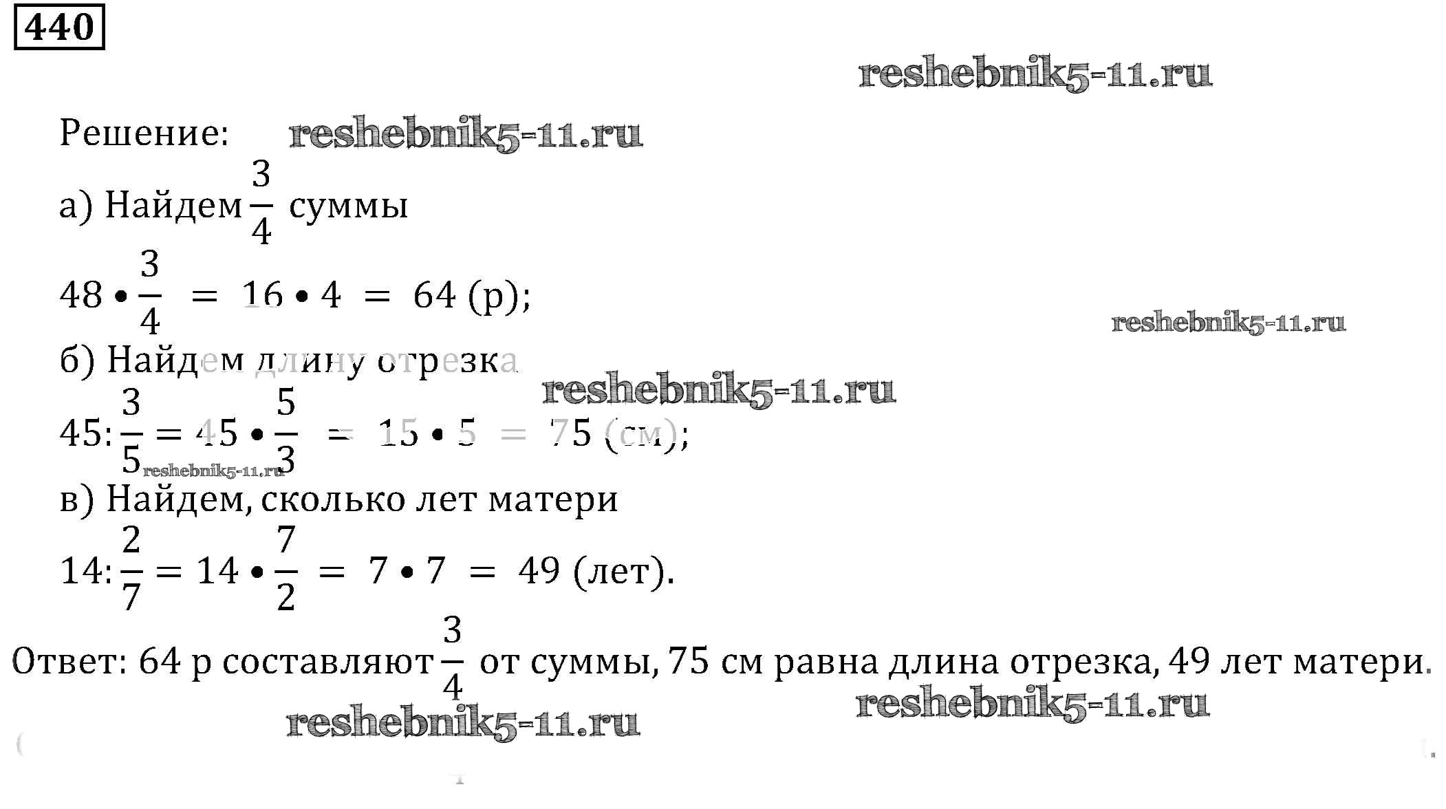 Готовая домашняя работа с ответами по Математике за 5 класс Бунимович Задачник Сферы Часть Просвещение 2015 ФГОС - Упражнения 440