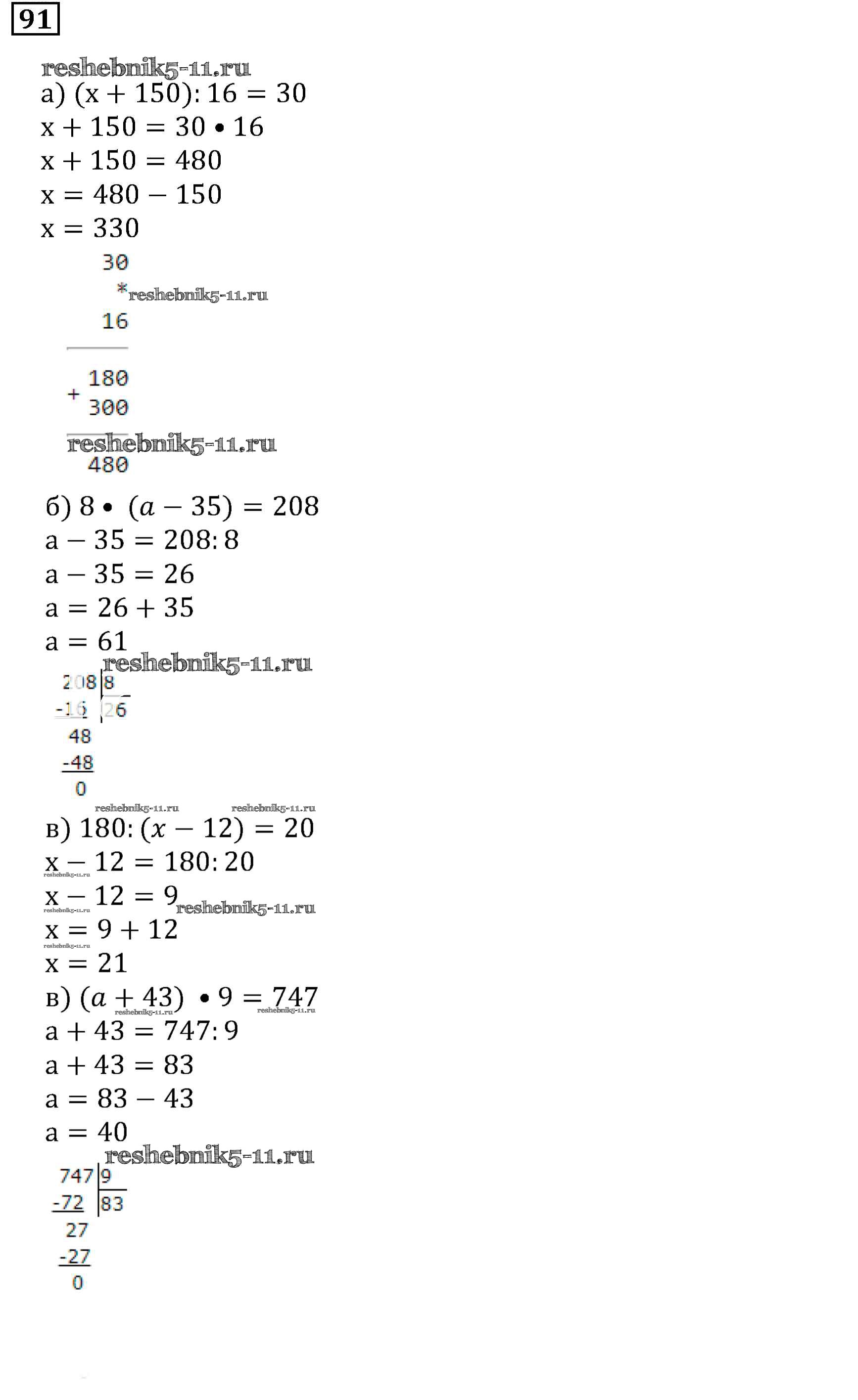 Готовая домашняя работа с ответами по Математике за 5 класс Бунимович Задачник Сферы Часть Просвещение 2015 ФГОС - Упражнения 91
