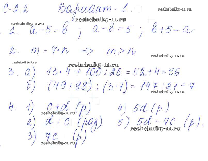 Готовая домашняя работа с ответами по Математике за 5 класс Зубарева, Шанцева, Мильштейн Самостоятельные работы Мнемозина 2016 ФГОС - СР-2.2 1