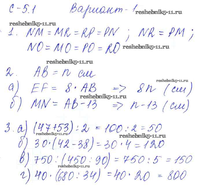 Готовая домашняя работа с ответами по Математике за 5 класс Зубарева, Шанцева, Мильштейн Самостоятельные работы Мнемозина 2016 ФГОС - СР-5.1 1