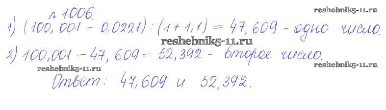 Готовая домашняя работа с ответами по Математике за 5 класс Гамбарин, Зубарева Сборник задач и упражнений Мнемозина 2011 ФГОС - Задачи 1006