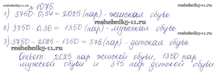 Готовая домашняя работа с ответами по Математике за 5 класс Гамбарин, Зубарева Сборник задач и упражнений Мнемозина 2011 ФГОС - Задачи 1075