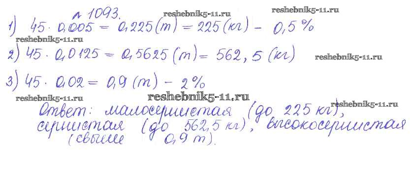 Готовая домашняя работа с ответами по Математике за 5 класс Гамбарин, Зубарева Сборник задач и упражнений Мнемозина 2011 ФГОС - Задачи 1093