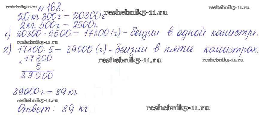 Готовая домашняя работа с ответами по Математике за 5 класс Гамбарин, Зубарева Сборник задач и упражнений Мнемозина 2011 ФГОС - Задачи 168