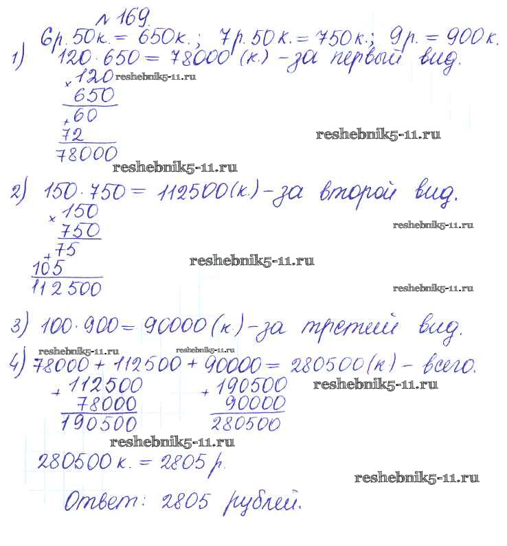 Готовая домашняя работа с ответами по Математике за 5 класс Гамбарин, Зубарева Сборник задач и упражнений Мнемозина 2011 ФГОС - Задачи 169
