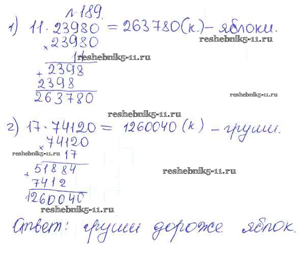 Готовая домашняя работа с ответами по Математике за 5 класс Гамбарин, Зубарева Сборник задач и упражнений Мнемозина 2011 ФГОС - Задачи 189