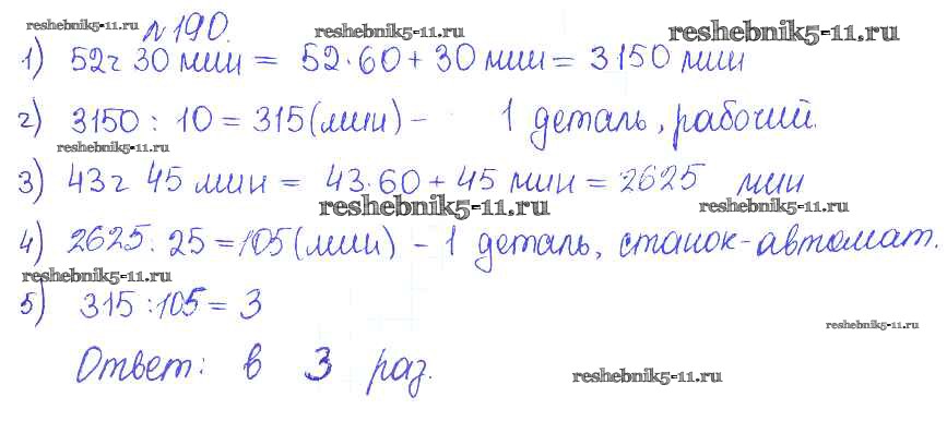 Готовая домашняя работа с ответами по Математике за 5 класс Гамбарин, Зубарева Сборник задач и упражнений Мнемозина 2011 ФГОС - Задачи 190