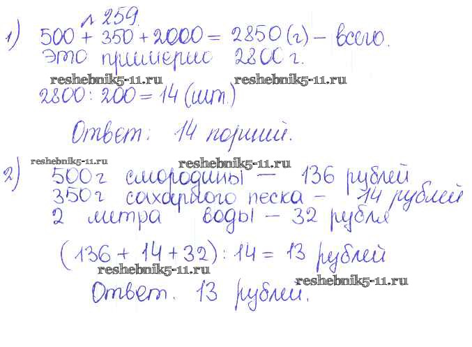Готовая домашняя работа с ответами по Математике за 5 класс Гамбарин, Зубарева Сборник задач и упражнений Мнемозина 2011 ФГОС - Задачи 259
