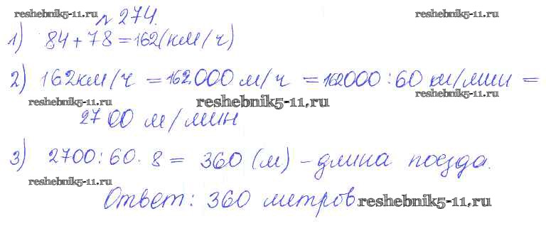 Готовая домашняя работа с ответами по Математике за 5 класс Гамбарин, Зубарева Сборник задач и упражнений Мнемозина 2011 ФГОС - Задачи 274