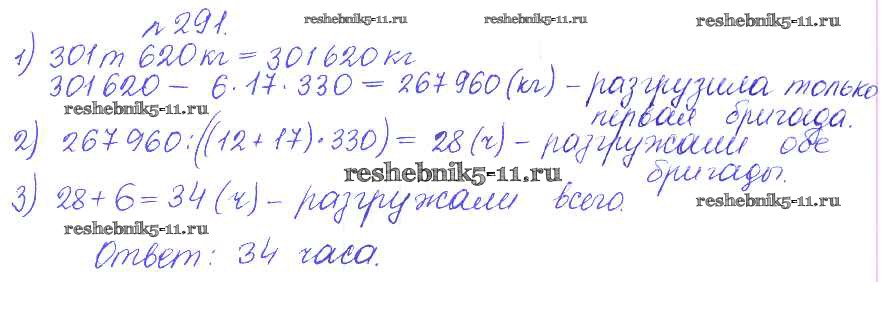 Готовая домашняя работа с ответами по Математике за 5 класс Гамбарин, Зубарева Сборник задач и упражнений Мнемозина 2011 ФГОС - Задачи 291
