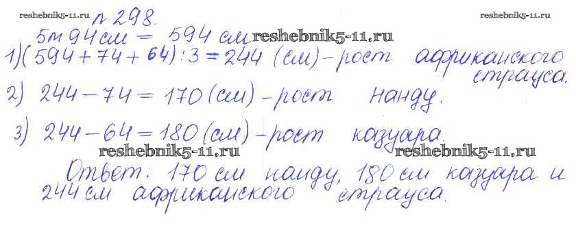 Готовая домашняя работа с ответами по Математике за 5 класс Гамбарин, Зубарева Сборник задач и упражнений Мнемозина 2011 ФГОС - Задачи 298