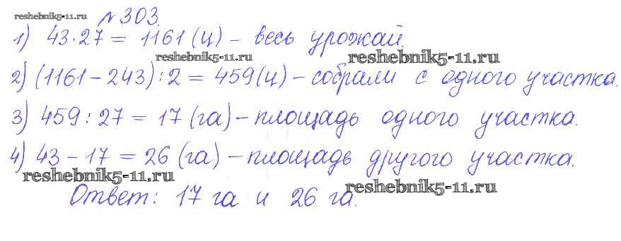 Готовая домашняя работа с ответами по Математике за 5 класс Гамбарин, Зубарева Сборник задач и упражнений Мнемозина 2011 ФГОС - Задачи 303