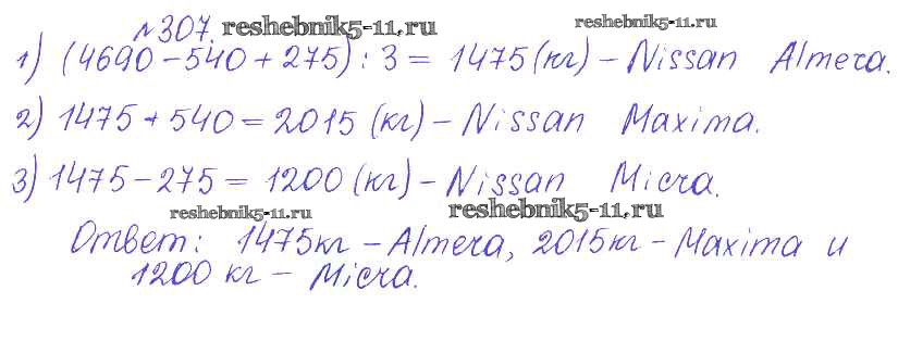 Готовая домашняя работа с ответами по Математике за 5 класс Гамбарин, Зубарева Сборник задач и упражнений Мнемозина 2011 ФГОС - Задачи 307