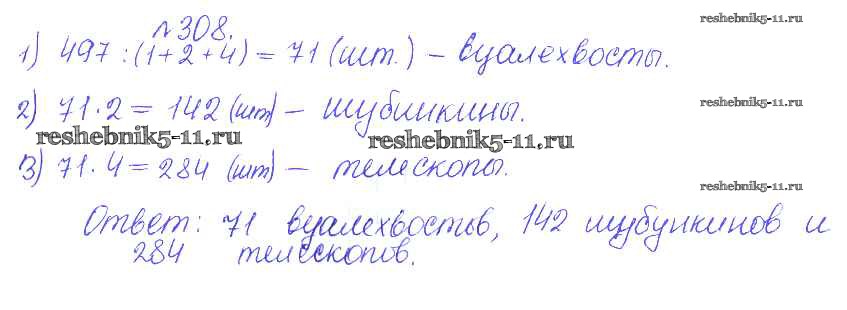 Готовая домашняя работа с ответами по Математике за 5 класс Гамбарин, Зубарева Сборник задач и упражнений Мнемозина 2011 ФГОС - Задачи 308