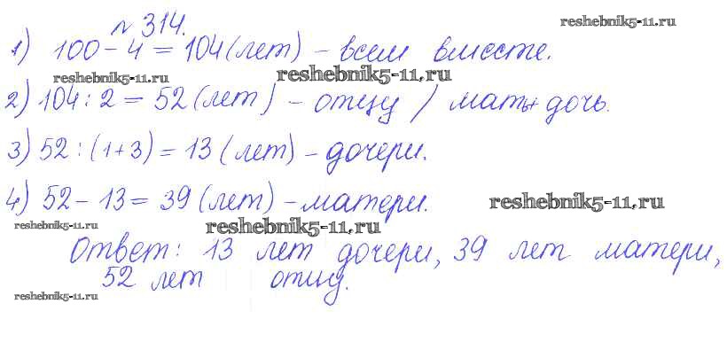 Готовая домашняя работа с ответами по Математике за 5 класс Гамбарин, Зубарева Сборник задач и упражнений Мнемозина 2011 ФГОС - Задачи 314