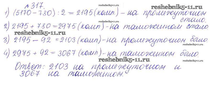 Готовая домашняя работа с ответами по Математике за 5 класс Гамбарин, Зубарева Сборник задач и упражнений Мнемозина 2011 ФГОС - Задачи 317