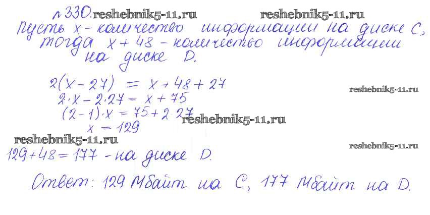 Готовая домашняя работа с ответами по Математике за 5 класс Гамбарин, Зубарева Сборник задач и упражнений Мнемозина 2011 ФГОС - Задачи 330