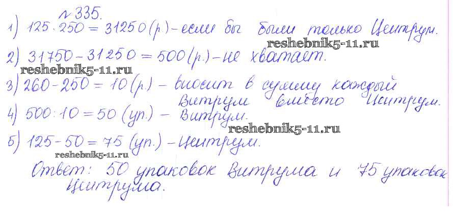 Готовая домашняя работа с ответами по Математике за 5 класс Гамбарин, Зубарева Сборник задач и упражнений Мнемозина 2011 ФГОС - Задачи 335