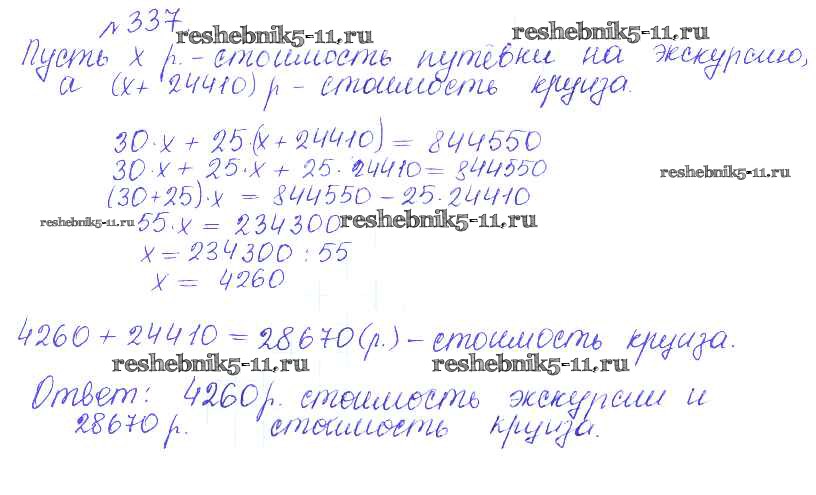 Готовая домашняя работа с ответами по Математике за 5 класс Гамбарин, Зубарева Сборник задач и упражнений Мнемозина 2011 ФГОС - Задачи 337