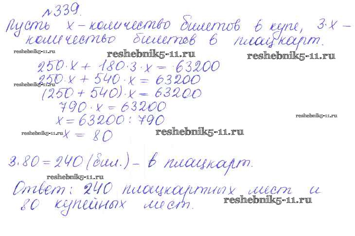 Готовая домашняя работа с ответами по Математике за 5 класс Гамбарин, Зубарева Сборник задач и упражнений Мнемозина 2011 ФГОС - Задачи 339