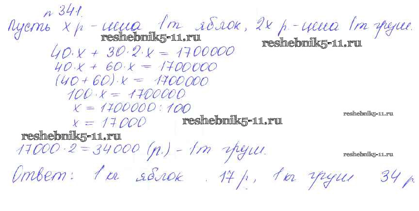 Готовая домашняя работа с ответами по Математике за 5 класс Гамбарин, Зубарева Сборник задач и упражнений Мнемозина 2011 ФГОС - Задачи 341