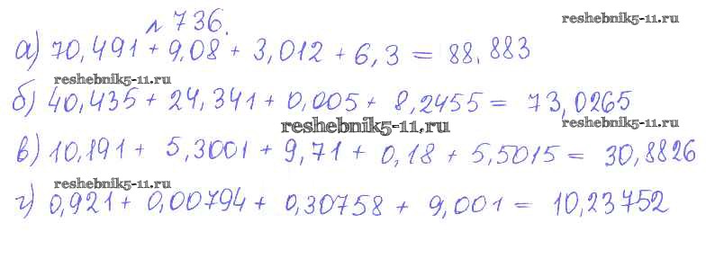 Готовая домашняя работа с ответами по Математике за 5 класс Гамбарин, Зубарева Сборник задач и упражнений Мнемозина 2011 ФГОС - Задачи 736