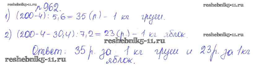 Готовая домашняя работа с ответами по Математике за 5 класс Гамбарин, Зубарева Сборник задач и упражнений Мнемозина 2011 ФГОС - Задачи 962