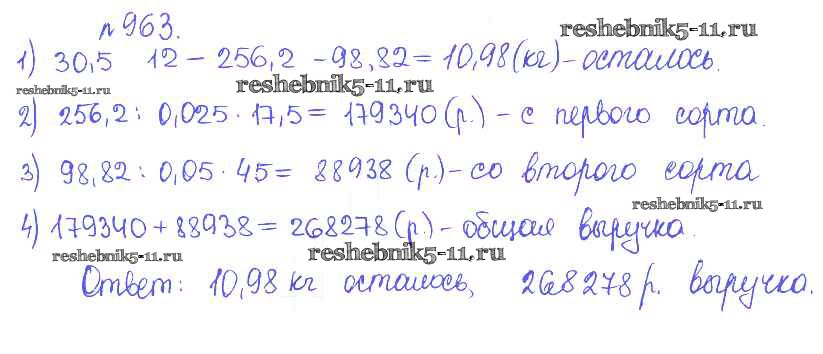 Готовая домашняя работа с ответами по Математике за 5 класс Гамбарин, Зубарева Сборник задач и упражнений Мнемозина 2011 ФГОС - Задачи 963