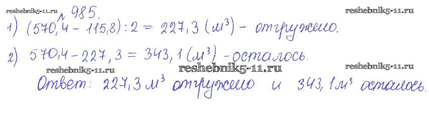 Готовая домашняя работа с ответами по Математике за 5 класс Гамбарин, Зубарева Сборник задач и упражнений Мнемозина 2011 ФГОС - Задачи 985