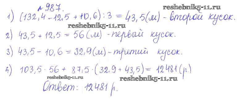 Готовая домашняя работа с ответами по Математике за 5 класс Гамбарин, Зубарева Сборник задач и упражнений Мнемозина 2011 ФГОС - Задачи 987