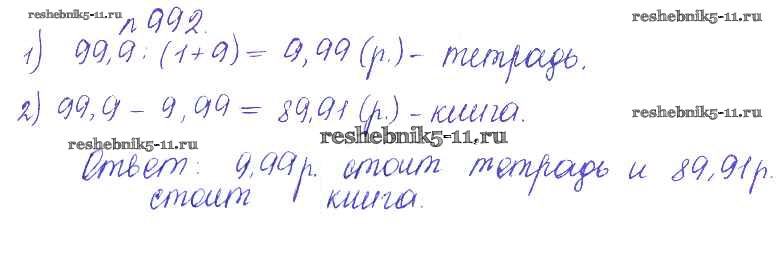 Готовая домашняя работа с ответами по Математике за 5 класс Гамбарин, Зубарева Сборник задач и упражнений Мнемозина 2011 ФГОС - Задачи 992