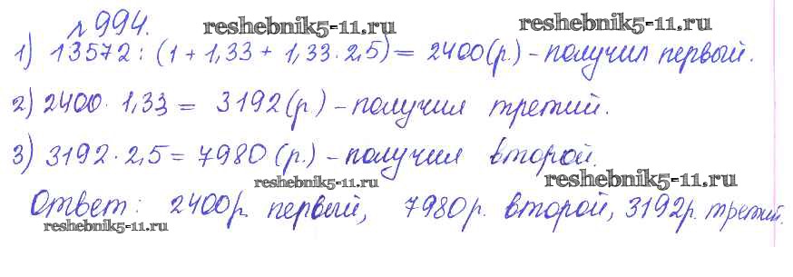 Готовая домашняя работа с ответами по Математике за 5 класс Гамбарин, Зубарева Сборник задач и упражнений Мнемозина 2011 ФГОС - Задачи 994