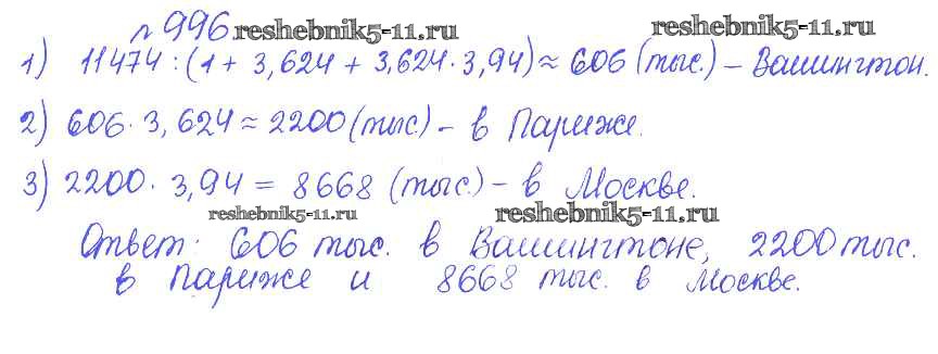 Готовая домашняя работа с ответами по Математике за 5 класс Гамбарин, Зубарева Сборник задач и упражнений Мнемозина 2011 ФГОС - Задачи 996