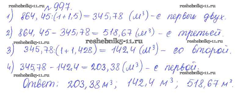 Готовая домашняя работа с ответами по Математике за 5 класс Гамбарин, Зубарева Сборник задач и упражнений Мнемозина 2011 ФГОС - Задачи 997