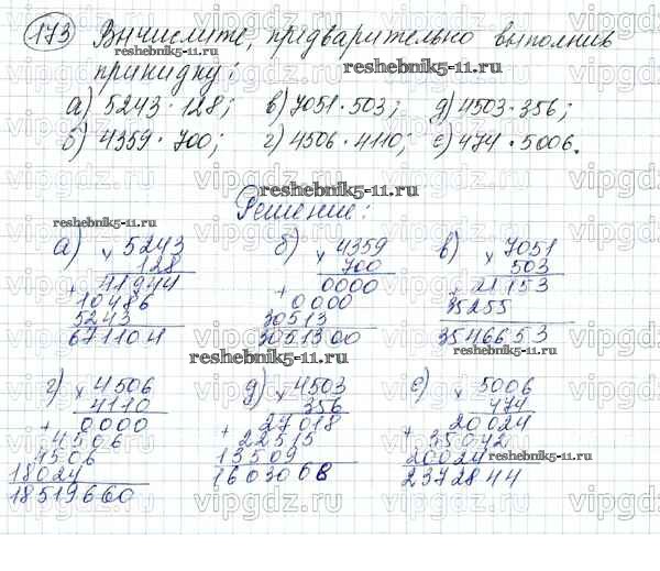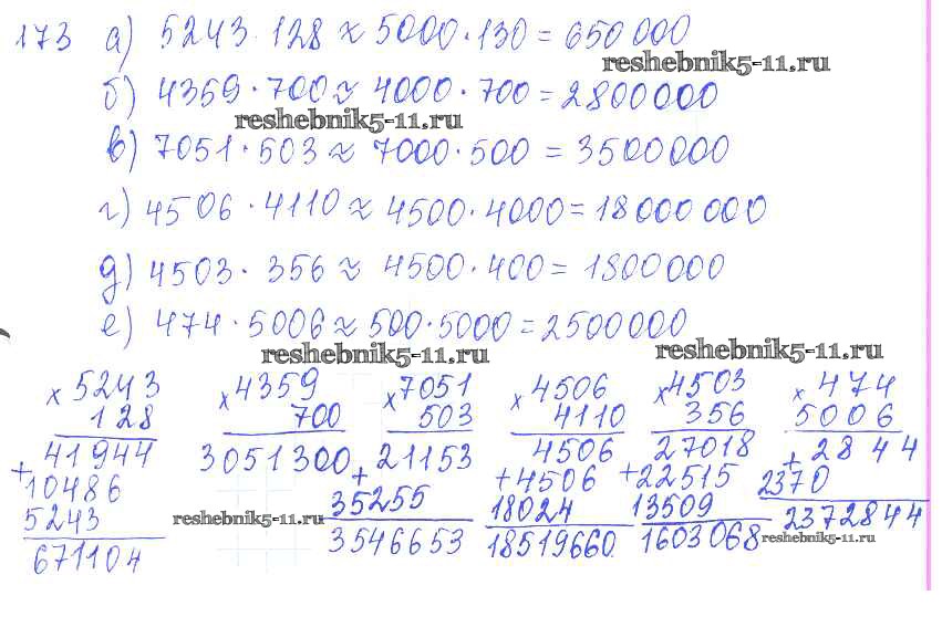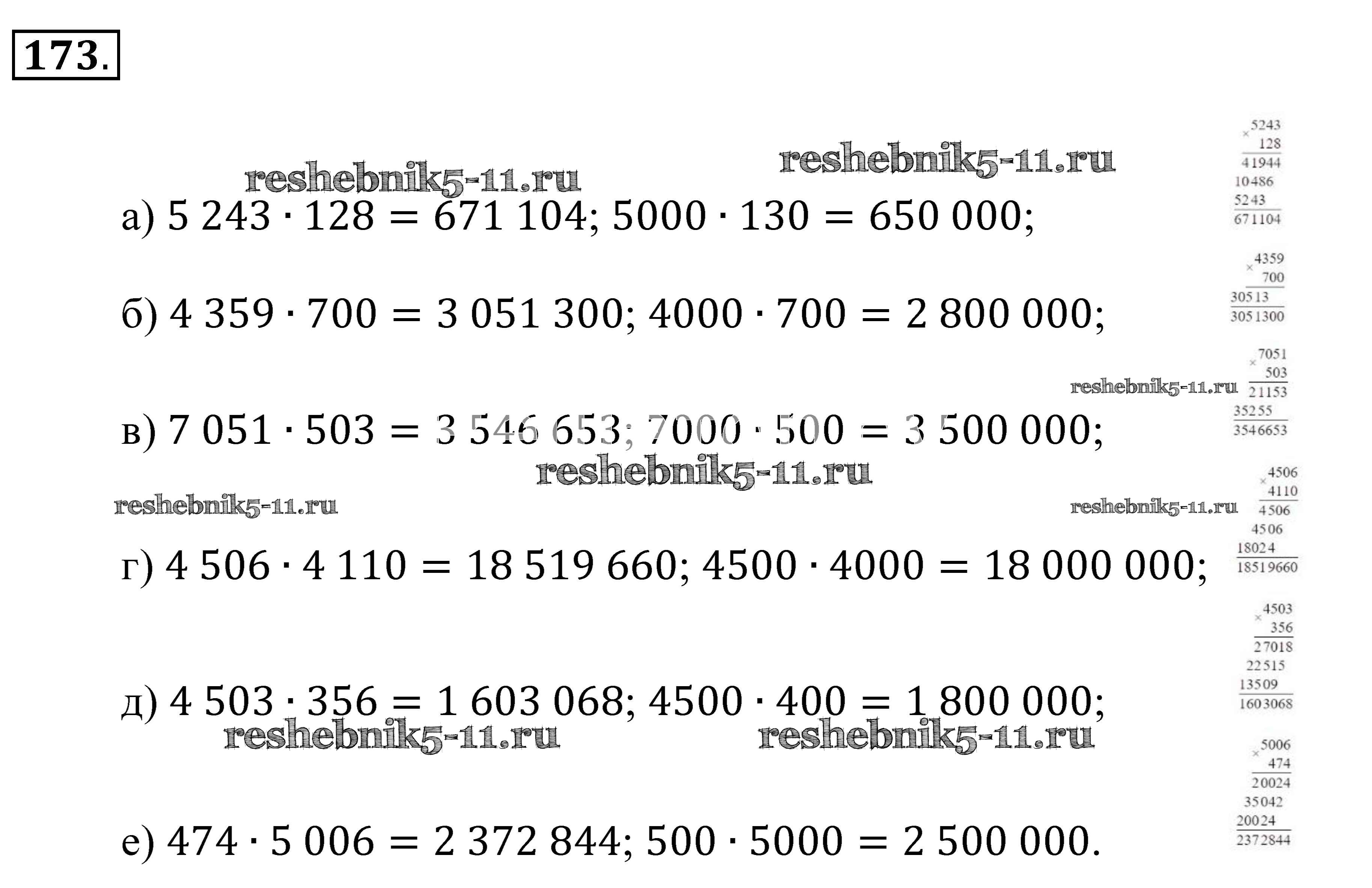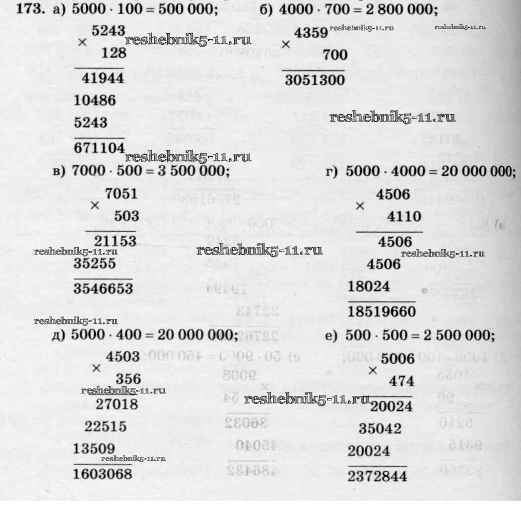 Готовая домашняя работа с ответами по Математике за 5 класс Зубарева, Мордкович Учебник Мнемозина 2015 ФГОС - Упражнения 173