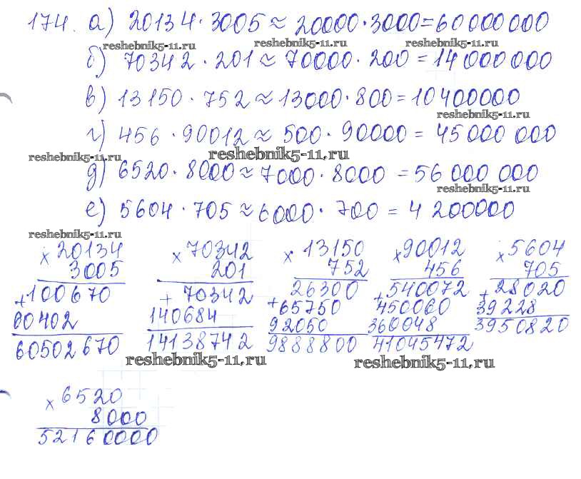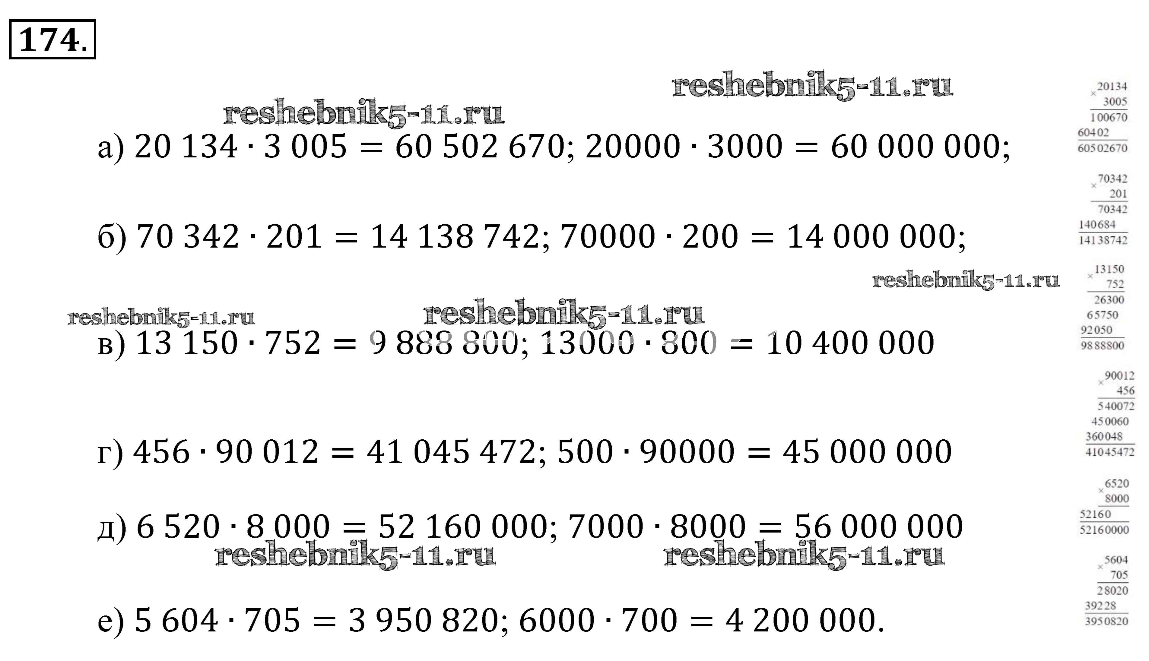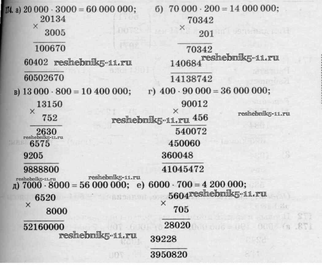 Готовая домашняя работа с ответами по Математике за 5 класс Зубарева, Мордкович Учебник Мнемозина 2015 ФГОС - Упражнения 174