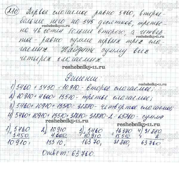 Готовая домашняя работа с ответами по Математике за 5 класс Зубарева, Мордкович Учебник Мнемозина 2015 ФГОС - Упражнения 210