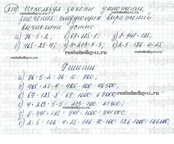 Готовая домашняя работа с ответами по Математике за 5 класс Зубарева, Мордкович Учебник Мнемозина 2015 ФГОС - Упражнения 214