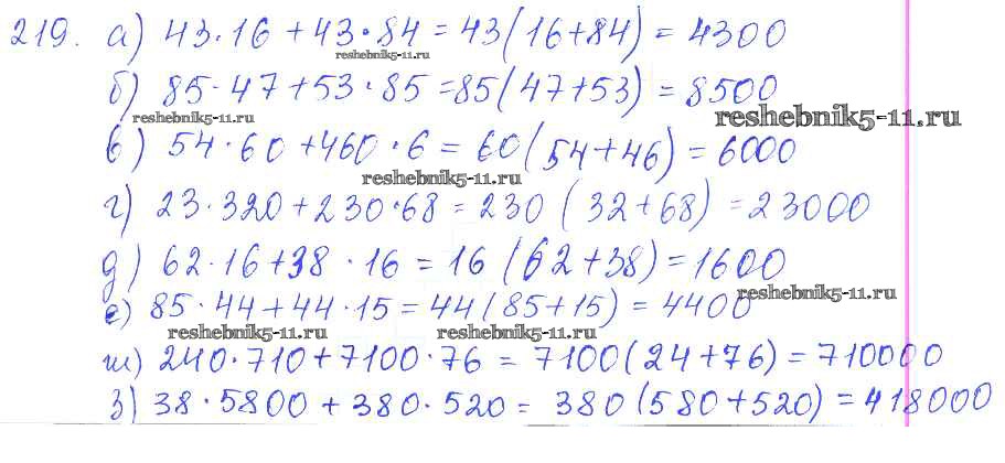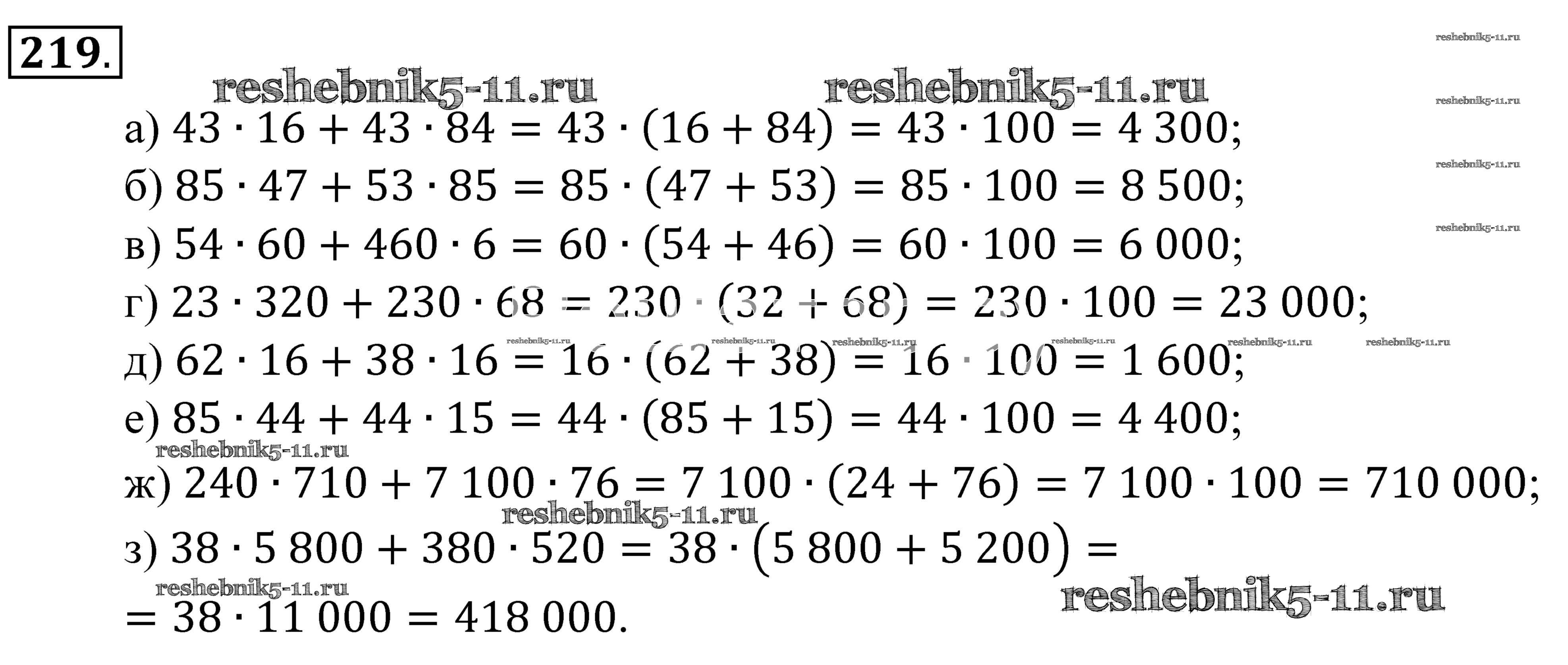 Готовая домашняя работа с ответами по Математике за 5 класс Зубарева, Мордкович Учебник Мнемозина 2015 ФГОС - Упражнения 219