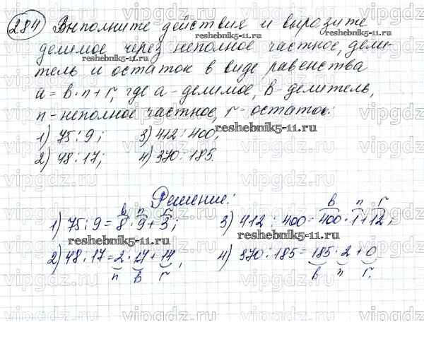 Готовая домашняя работа с ответами по Математике за 5 класс Зубарева, Мордкович Учебник Мнемозина 2015 ФГОС - Упражнения 284