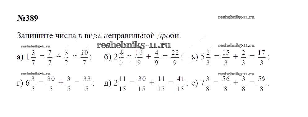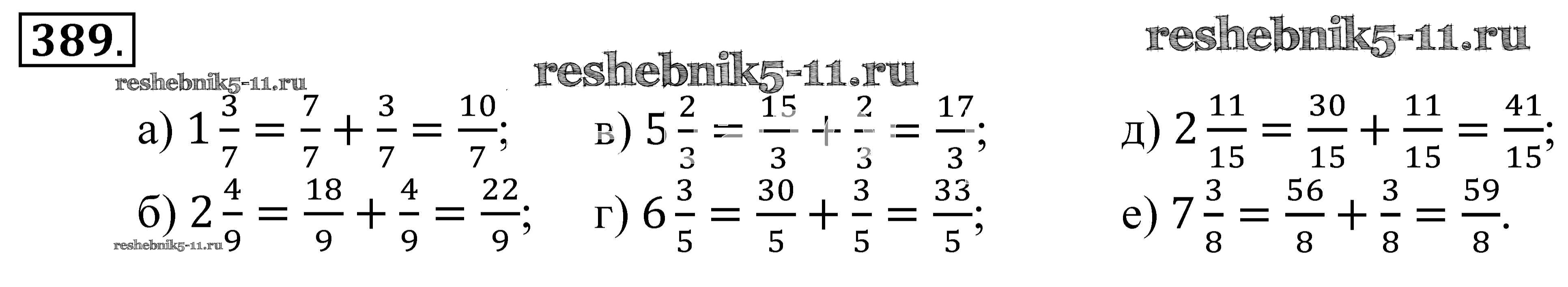 Готовая домашняя работа с ответами по Математике за 5 класс Зубарева, Мордкович Учебник Мнемозина 2015 ФГОС - Упражнения 389