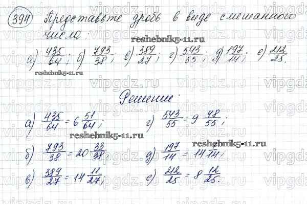 Готовая домашняя работа с ответами по Математике за 5 класс Зубарева, Мордкович Учебник Мнемозина 2015 ФГОС - Упражнения 394